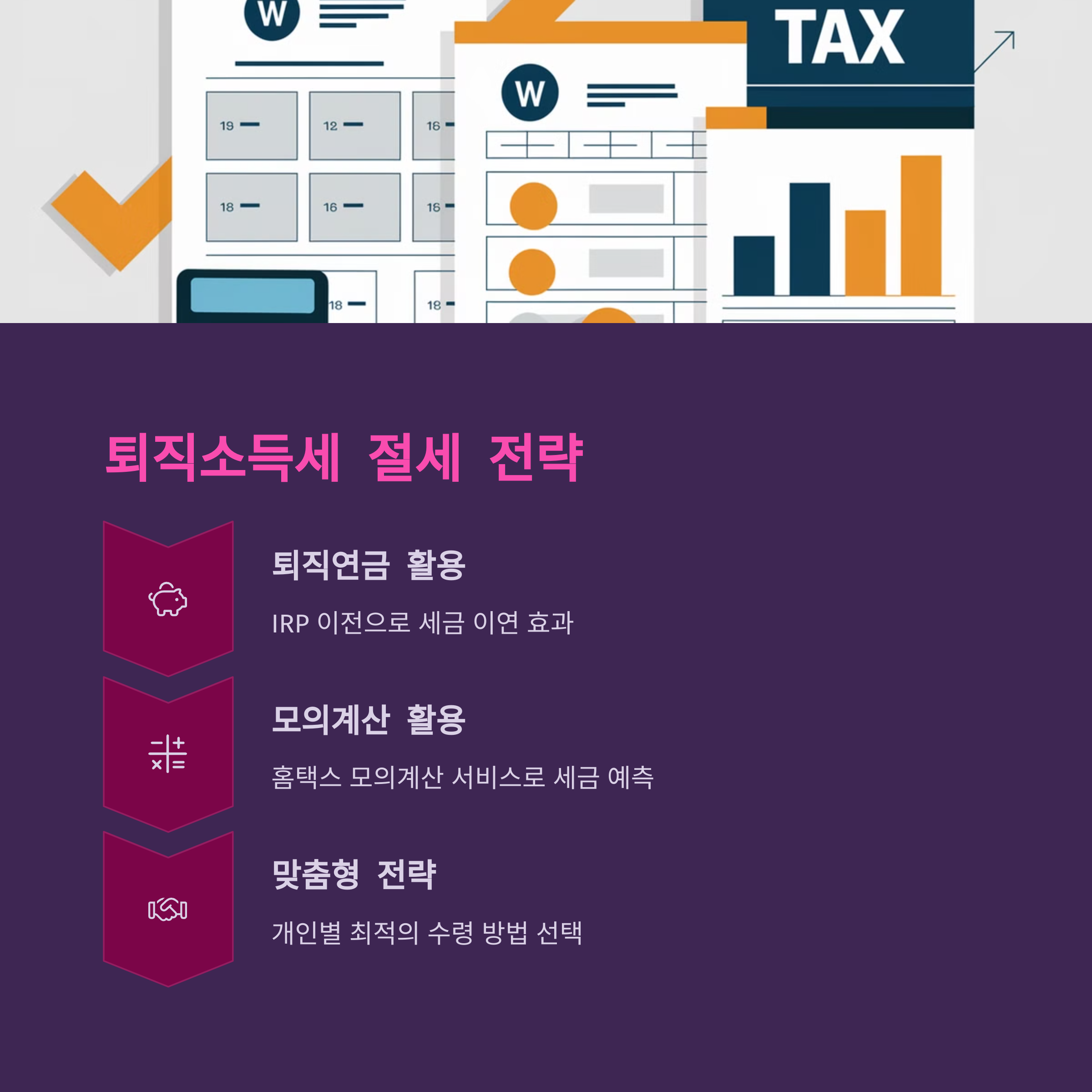 퇴직금에 대한 세금을 줄이기 위한 몇 가지 전략을 소개해 드릴게요: